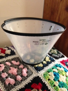 What’s really gotten to me is taking care of my dogs. Boo had a growth removed from in front of his left ear about a week ago. That first night after surgery he spent crying and throwing up. I could not console him. He was and still is having to wear a cone to keep him from scratching his surgical site while it is healing. In addition, one of my other dogs, Gus, is a “licker”——he likes to lick and groom or “parent” other dogs almost non-stop. Therefore, I had to put a cone on Gus to keep him from licking Boo’s surgical site.